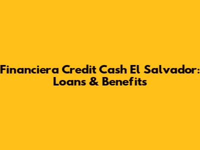 Financiera Credit Cash El Salvador: Loans & Benefits