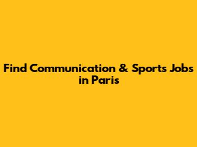 Find Communication & Sports Jobs In Paris
