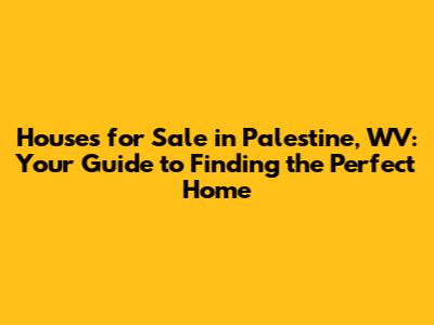 Looking for houses for sale in Palestine, WV? You've come to the right place! This guide will walk you through everything you need to know about finding your dream home in this charming West Virginia town. From understanding the local market to navigating the buying process, we've got you covered.