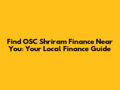 Finding OSC Shriram Finance Branches Near You