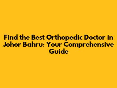 Hey guys! Are you experiencing joint pain, struggling with a sports injury, or maybe just looking for expert orthopedic care in Johor Bahru? Well, you're in the right place! Finding the right orthopedic doctor can feel like a daunting task, but don't worry, I'm here to break it down and make it super easy for you. Johor Bahru is home to some seriously talented orthopedic specialists, and this guide will help you navigate your options, understand what to look for, and ultimately, get you the best possible care. So, let's dive in and get you back on your feet! We'll cover everything from the types of conditions orthopedic doctors treat to how to choose the right one for you. Get ready to become an informed patient and take control of your orthopedic health! This comprehensive guide will equip you with the knowledge you need to make the best decisions for your health and well-being. Let's make sure you get the best possible care from the most qualified orthopedic doctor in Johor Bahru! Let's get started.