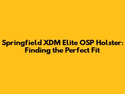 Find The Best Springfield XDM Elite OSP Holster