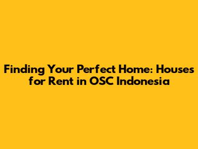 Find Your Dream Home: Houses For Rent In OSC Indonesia