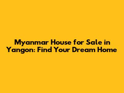 Find Your Dream House: Myanmar House For Sale In Yangon