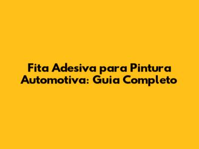 Fita Adesiva Para Pintura Automotiva: Guia Completo