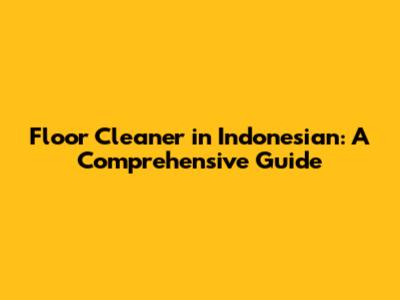 Floor Cleaner In Indonesian: A Comprehensive Guide