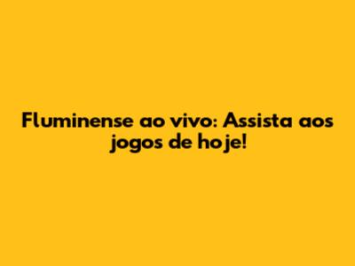 Fluminense Ao Vivo: Assista Aos Jogos De Hoje!