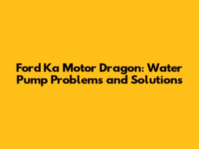 Ford Ka Motor Dragon: Water Pump Problems And Solutions