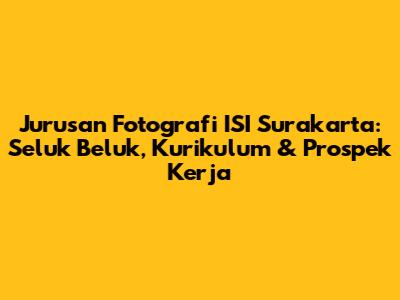 Institut Seni Indonesia (ISI) Surakarta, guys, punya jurusan yang keren banget, yaitu Fotografi! Buat kamu yang punya passion di dunia visual dan tertarik buat ngembangin kemampuan dalam mengabadikan momen lewat lensa, jurusan ini bisa jadi pilihan yang tepat. Kita bahas tuntas yuk, mulai dari apa aja yang dipelajari, kurikulumnya gimana, sampai prospek kerjanya nanti setelah lulus!