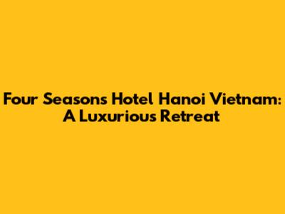 Hey guys! Ever dreamt of a luxurious getaway in the heart of Southeast Asia? Well, look no further than the Four Seasons Hotel Hanoi, Vietnam. This isn't just a hotel; it's an experience, a plunge into the heart of Vietnamese culture, wrapped in the arms of unparalleled luxury. From the moment you step into the stunning colonial-inspired lobby, you're transported to a world of elegance and refinement. Let's dive deep into what makes the Four Seasons Hanoi a must-visit destination. I'll take you through everything – the rooms, the food, the service, and the overall vibe. Trust me; this place is the real deal.