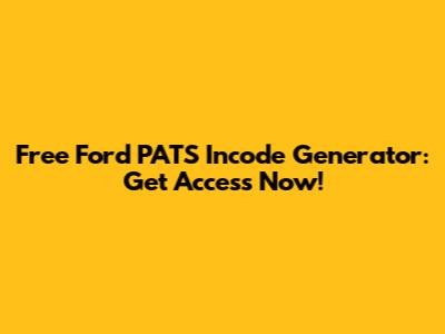 Free Ford PATS Incode Generator: Get Access Now!