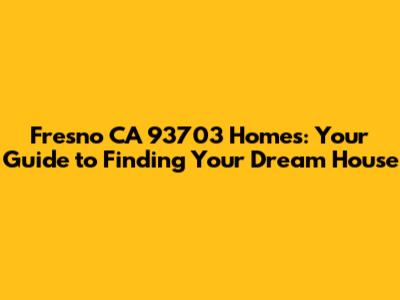 Fresno CA 93703 Homes: Your Guide To Finding Your Dream House