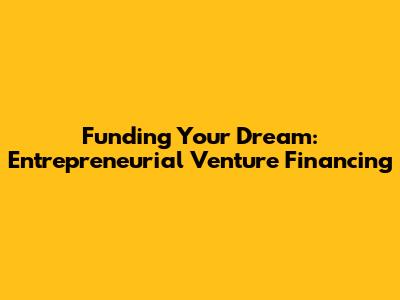 Funding Your Dream: Entrepreneurial Venture Financing