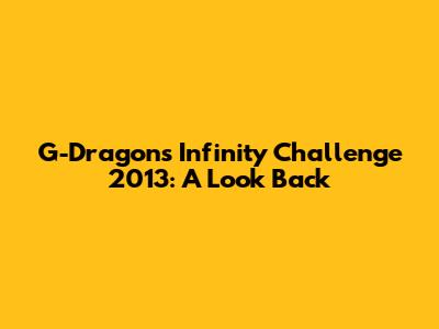 G-Dragon's Infinity Challenge 2013: A Look Back