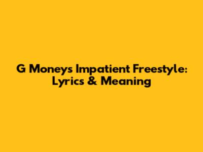 G Money's Impatient Freestyle: Lyrics & Meaning