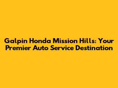 Hey there, car lovers! If you're cruising around and your Honda needs some TLC, or maybe you're just looking for a reliable spot for regular maintenance, look no further than Galpin Honda Mission Hills. We're talking about a one-stop shop for all your vehicle's needs, from routine check-ups to more complex repairs. Let's dive into why Galpin Honda Mission Hills should be your go-to place for all things Honda. We'll explore the services they offer, the expertise of their technicians, and why choosing a dealership service center can make a world of difference for your car and your peace of mind.