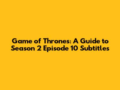Game Of Thrones: Season 2 Episode 10 Subtitles Guide