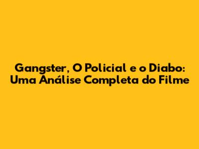 Gangster, O Policial E O Diabo: Uma Análise Completa Do Filme