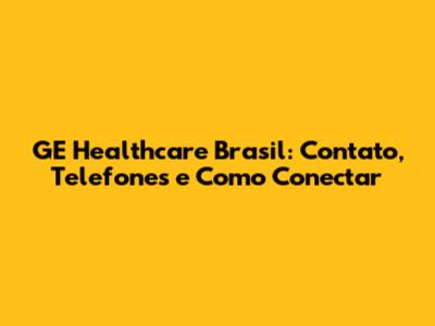 GE Healthcare Brasil: Contato, Telefones E Como Conectar
