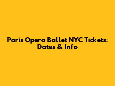 Get Paris Opera Ballet NYC Tickets: Dates & Info