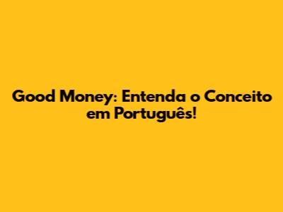 Good Money: Entenda O Conceito Em Português!