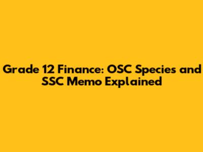 Grade 12 Finance: OSC Species And SSC Memo Explained