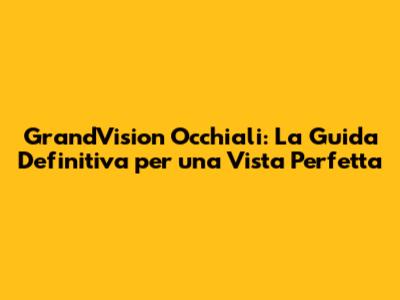 GrandVision Occhiali: La Guida Definitiva Per Una Vista Perfetta