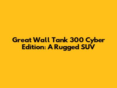 Hey guys, let's dive into something seriously cool: the Great Wall Tank 300 Cyber Edition. If you're all about rugged SUVs that don't skimp on style and tech, you're gonna love this beast. This isn't just another off-roader; it's a statement. The Cyber Edition takes the already impressive Tank 300 and injects it with a futuristic vibe, making it stand out from the crowd whether you're tackling a muddy trail or cruising through the city. We're talking about a vehicle that blends raw power with sophisticated design, and honestly, it's a combo that's hard to beat. So, buckle up as we explore what makes this edition a must-have for adventure seekers and style mavens alike.