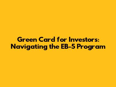 Hey everyone! Let's dive into something super important for those looking to invest and live in the U.S.: the Green Card for Investors. More specifically, we're talking about the EB-5 program. This program is a fantastic pathway for investors and their families to get a Green Card (aka permanent residency) by investing in job-creating projects in the United States. Sounds pretty sweet, right? Well, let's break it down so you know what's what.