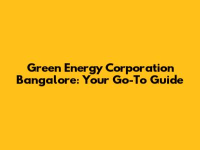 Green Energy Corporation In Bangalore: A Complete Guide
