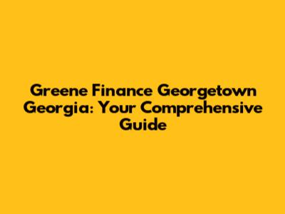 Greene Finance In Georgetown, GA: Your Complete Guide