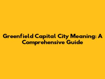 Greenfield Capital City: What Does It Mean?