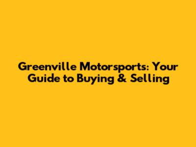 Greenville Motorsports: Your Guide To Buying & Selling