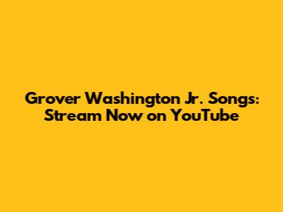 Grover Washington Jr. Songs: Stream Now On YouTube