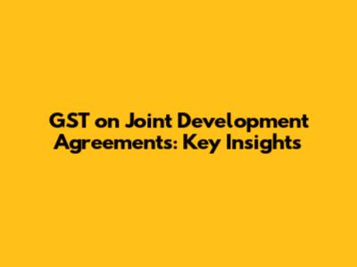 GST On Joint Development Agreements: Key Insights