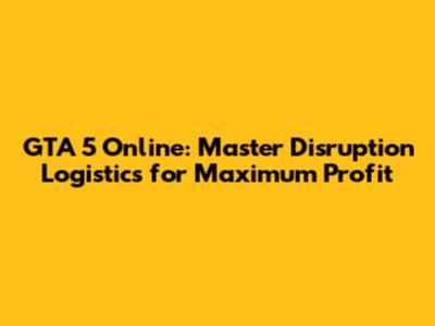 GTA 5 Online: Master Disruption Logistics For Maximum Profit