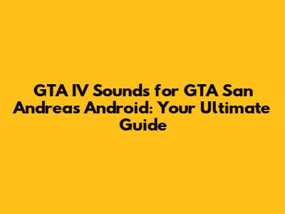 GTA IV Sounds On GTA San Andreas Android: A Complete Guide