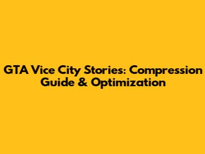 GTA Vice City Stories: Compression Guide & Optimization