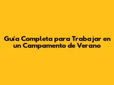 ¡Hola a todos! ¿Alguna vez soñaron con pasar el verano en un lugar increíble, rodeados de naturaleza, haciendo actividades divertidas y, además, ganando dinero? Pues, ¡están de suerte! Trabajar en un campamento de verano es una experiencia única que les cambiará la vida. En esta guía, les contaré todo lo que necesitan saber para convertirse en parte de este mundo mágico. Desde cómo encontrar el campamento perfecto hasta qué esperar en el día a día, pasando por los requisitos y los beneficios. ¡Prepárense para sumergirse en la aventura!Trabajar en un campamento de verano es una oportunidad de crecimiento personal y profesional, donde podrás desarrollar habilidades de liderazgo, comunicación y trabajo en equipo. Además, conocerás a personas de todo el mundo y crearás recuerdos inolvidables. ¿Están listos para descubrir cómo hacer de este verano el mejor de sus vidas?