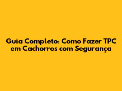 Guia Completo: Como Fazer TPC Em Cachorros Com Segurança