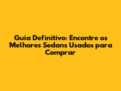 Guia Definitivo: Encontre Os Melhores Sedans Usados Para Comprar