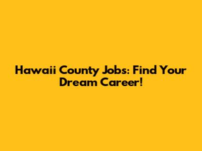 Hawaii County Jobs: Find Your Dream Career!