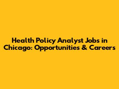 Health Policy Analyst Jobs In Chicago: Opportunities & Careers