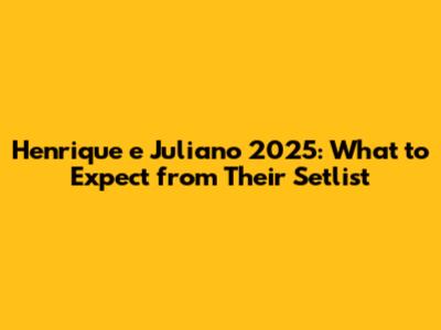 Henrique E Juliano 2025: What To Expect From Their Setlist