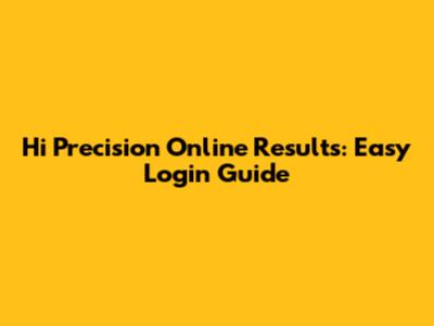 Hi Precision Online Results: Easy Login Guide