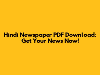 Hindi Newspaper PDF Download: Get Your News Now!