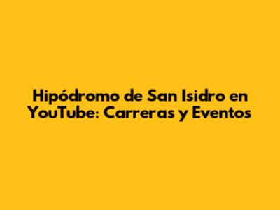 Hipódromo De San Isidro En YouTube: Carreras Y Eventos