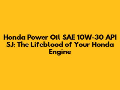 Honda Power Oil SAE 10W-30 API SJ is a reliable choice for older Honda vehicles, providing the necessary lubrication and protection to keep your engine running smoothly. Always ensure it meets the specifications in your owner's manual, and you'll be well on your way to a long and healthy engine life. Remember, regular maintenance, including oil changes, is key to keeping your Honda in top condition. Take care of your engine, and it will take care of you!