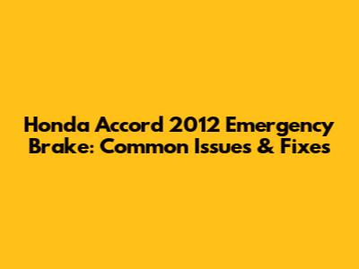 Honda Accord 2012 Emergency Brake: Common Issues & Fixes