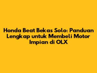 Honda Beat bekas Solo – Wah, buat kalian yang lagi cari motor matic irit dan lincah di Solo, pasti udah gak asing lagi sama Honda Beat, kan? Nah, kalau lagi nyari Beat bekas di Solo, salah satu platform yang paling populer buat cari-cari adalah OLX. Di sini, kalian bisa nemuin beragam pilihan Honda Beat bekas dari berbagai tahun dan kondisi. Tapi, gimana sih caranya biar gak salah pilih dan dapet Honda Beat bekas Solo yang sesuai sama kebutuhan dan budget kita? Tenang, guys! Artikel ini bakal ngebantu banget buat kalian. Kita bakal bahas tuntas tentang cara mencari, memilih, dan bahkan tips negosiasi harga Honda Beat bekas di OLX.